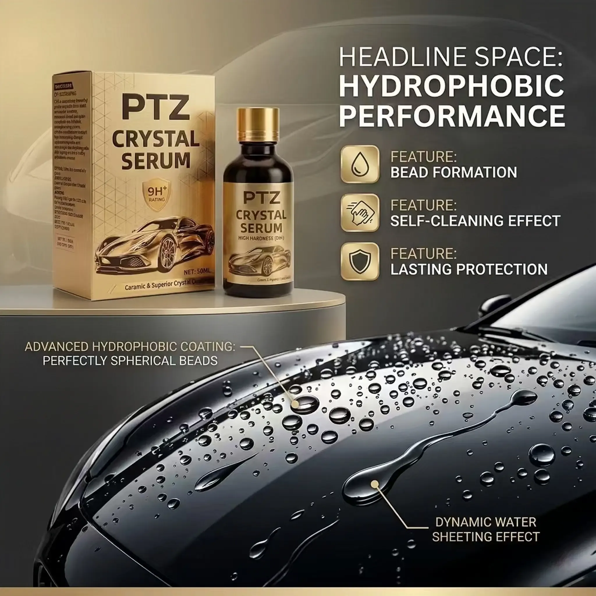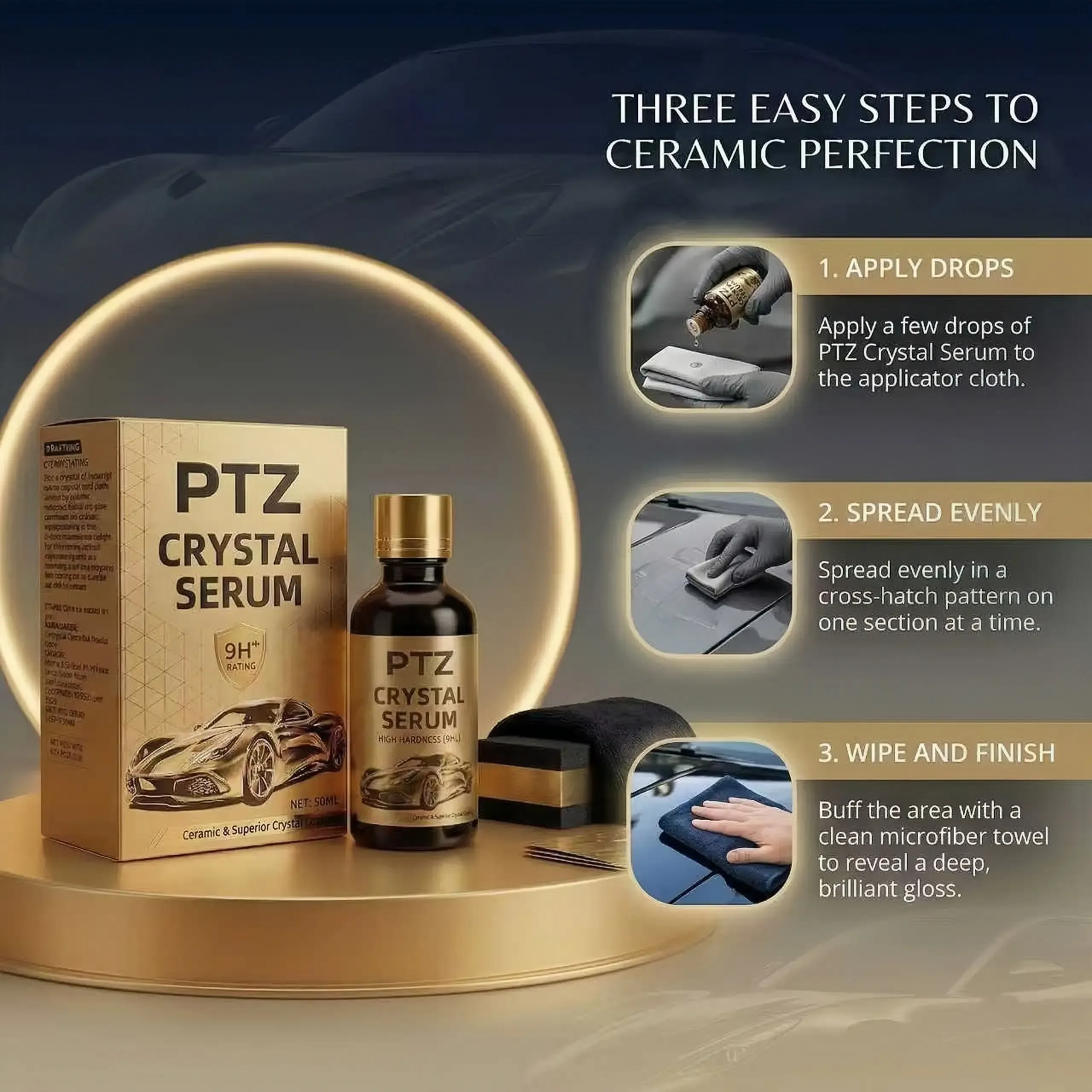 PTZ Crystal Serum – Premium Graphene Ceramic Car Coating (50ml), 9H Graphene Coating, Suitable for Car Detailing, Provides Long-lasting Car Protection for Over 10 Years, Glossy Hydrophobic and Scratch Resistant