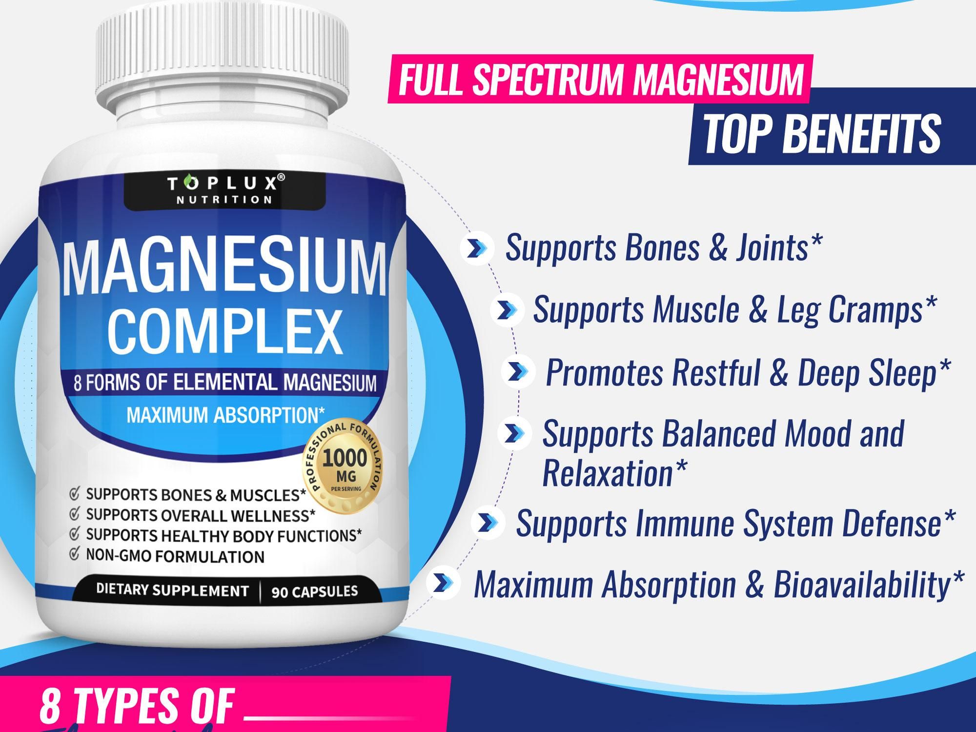 Toplux Magnesium Complex 8 Essential Magnesium Supplement 1000mg